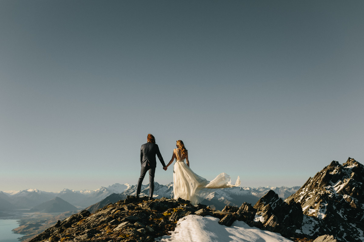 The great wilderness beckons. Just beyond where the road ends, and civilisation disappears, you have access to the kind of pristine, mouth-watering beauty that delivers elopement photography glory. A short helicopter ride delivers you into the wild landscapes just beyond Queenstown, Glenorchy and Paradise.